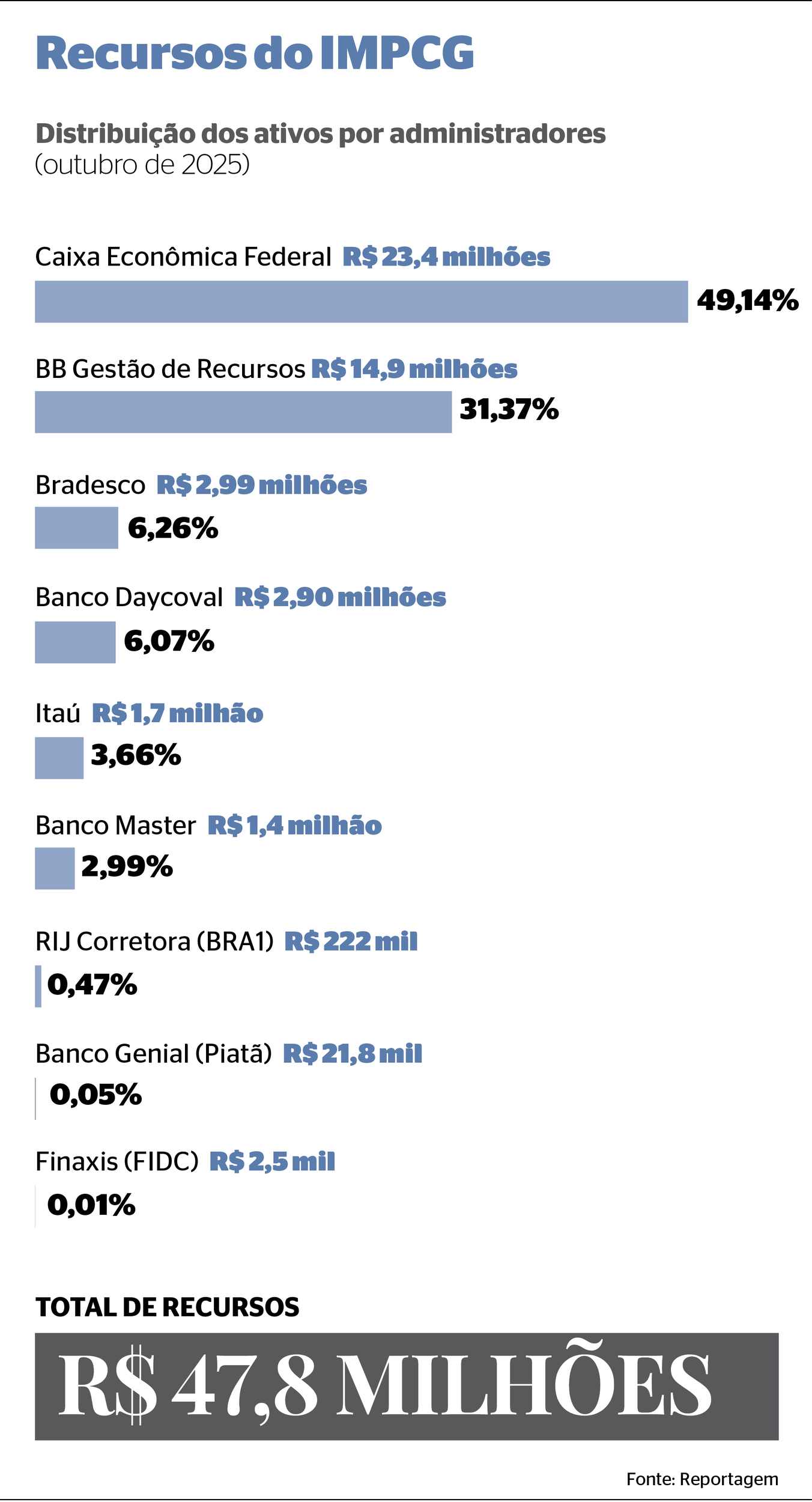 Caso a falência do Master se confirme, este será o segundo calote sofrido pelo IMPCG. Em 2013, com a falência do Banco Rural, o instituto perdeu em torno de R$ 50 milhões.