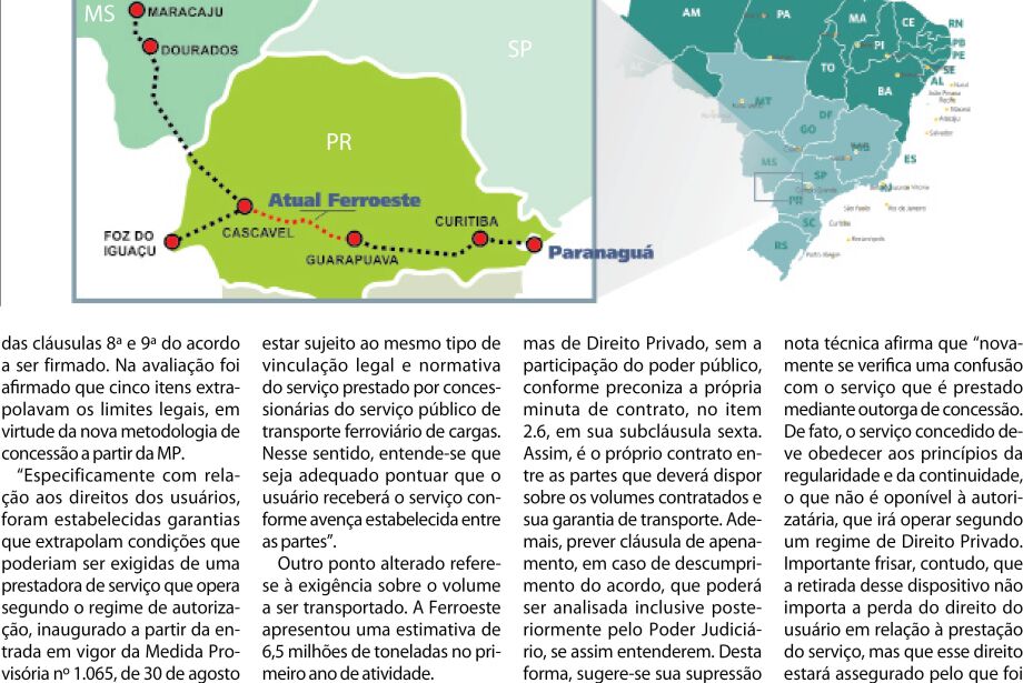 Também foram excluídas as subcláusulas 3 e 4, que obrigariam a Ferroeste a seguir a Lei nº 8.987, de 13 de fevereiro de 1995, que regula as concessões.