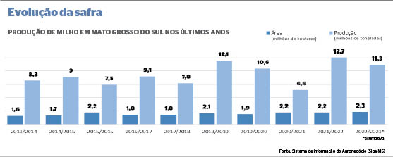 Nas questões climáticas, o documento enfatiza que o futuro da cultura ainda é incerto. “Mato Grosso do Sul apresenta 54% da produção fora da melhor janela de semeadura, correndo o risco de sofrer com intempéries climáticas [estiagem, geada e queda de granizo]”, detalha o boletim.