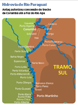 O pleito foi apresentado à Agência Nacional de Transportes Aquaviários (Antaq) em fevereiro deste ano e reforçado na audiência pública de abril que recebeu sugestões da sociedade sobre o formato da concessão da hidrovia, com 590 km no Tramo Sul, que vai de Corumbá até a Foz do Rio Apa, em Porto Murtinho, e 10 km do Canal do Tamengo, em Corumbá. O leilão deve ocorrer no fim deste ano.
