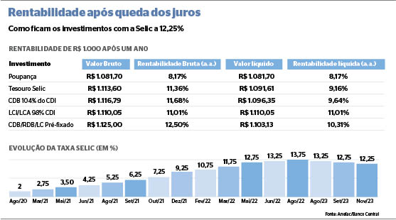 A queda da taxa tende a baratear o custo do crédito e a rentabilidade de algumas aplicações cai. Apesar dos cortes, a manutenção dos juros em dois dígitos mantém a rentabilidade da renda fixa, de acordo com os analistas econômicos.