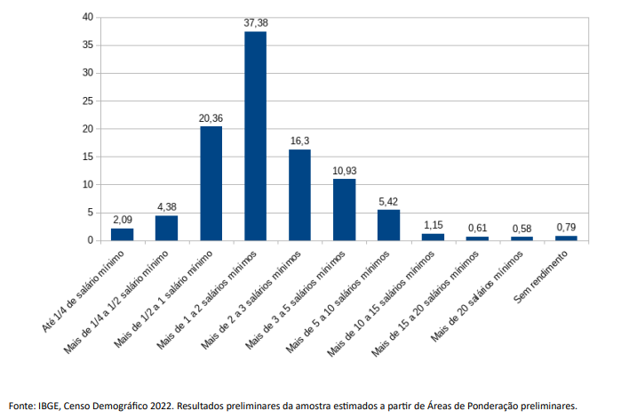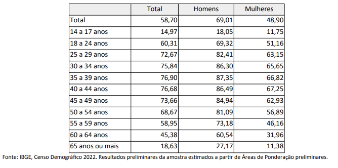 Os dados foram divulgados nesta quinta-feira (9) pelo Instituto Brasileiro de Geografia e Estatística (IBGE) através do Censo 2022: Trabalho e Rendimento e Deslocamentos para trabalho e estudo.