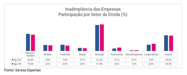 Conforme o balanço, a dívida média das empresas totalizou R$24,631,20, um aumento de 13,6% em relação ao mês de agosto do ano passado.