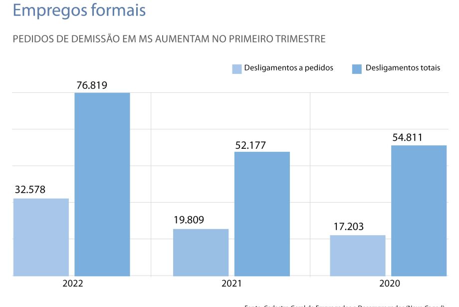 Com média de 25.606 desligamentos mensais nos três primeiros meses, caso ela persista durante todo o ano, o Estado pode chegar a dezembro de 2022 com 307.276 desligamentos, aumento de 33,59% no comparativo com 2021. No último ano, 230.002 trabalhadores perderam ou deixaram os empregos segundo levantamento feito pela reportagem do Correio do Estado com auxílio da LCA Consultores.