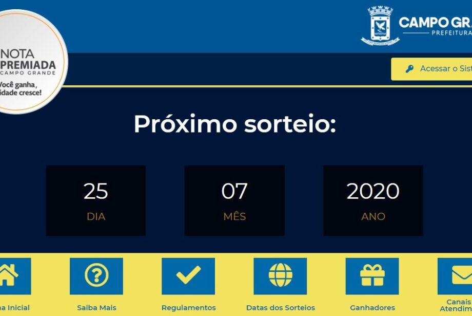 Após ficar suspenso por três meses devido à pandemia do novo coronavírus, Prefeitura de Campo Grande volta a realizar os sorteios da Nota Premiada. O programa dá prêmios em dinheiro para contribuintes sorteados que pedirem o CPF na nota em compras acima de R$ 20,00 de produtos e serviços sobre os quais incidem o Imposto Sobre Serviços de Qualquer Natureza (ISSQN).