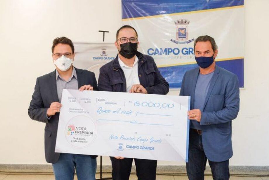 A Prefeitura de Campo Grande entregou nesta quinta-feira (22), R$ 70 mil em prêmios do Nota Premiada Campo Grande. Neste 5° sorteio, os prêmios foram divididos em R$ 50 mil, R$ 15 mil e R$ 5 mil.