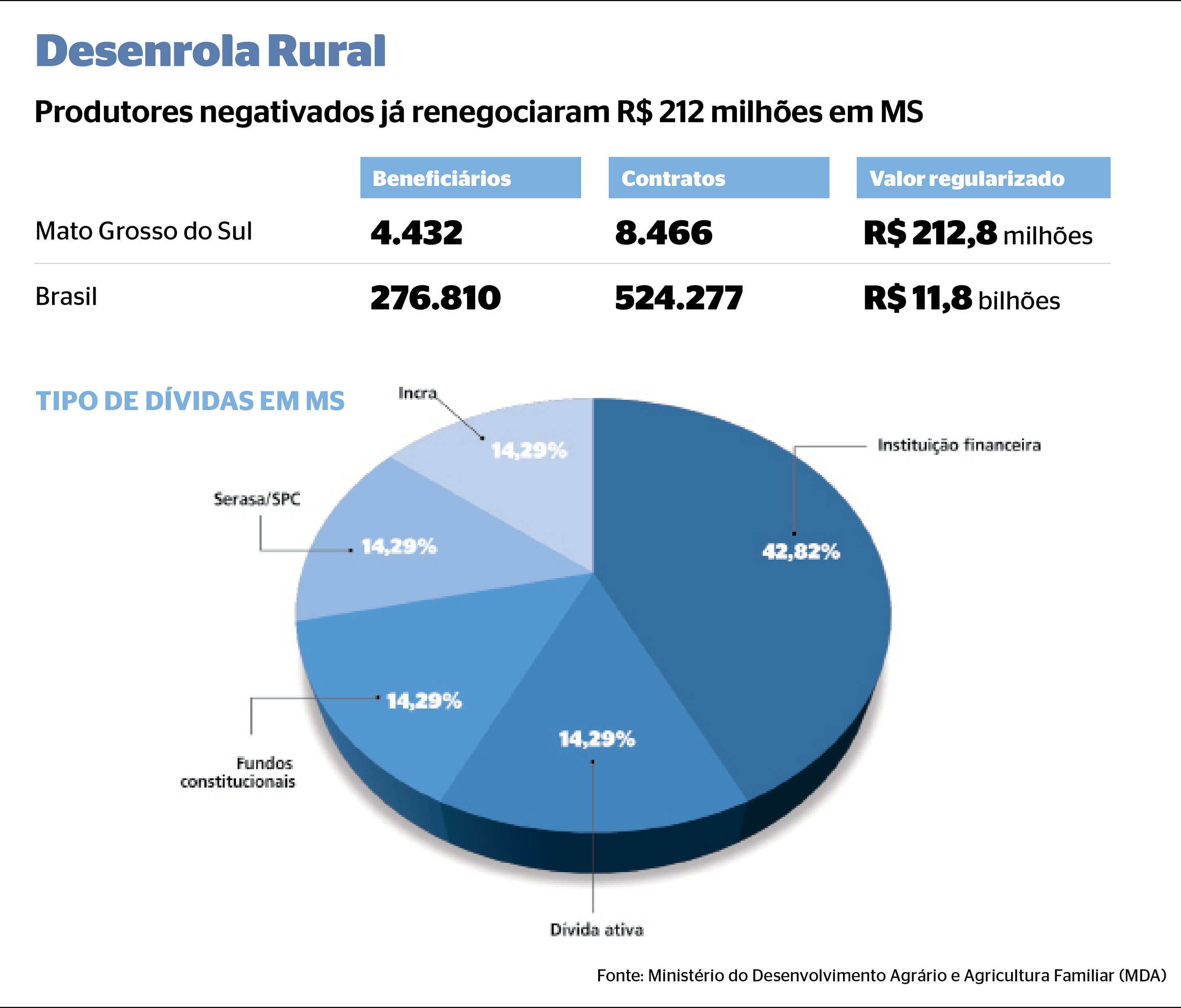 O levantamento repassado pelo MDA ao Correio do Estado também mostra que 380 produtores rurais negativados em cadastros como Serasa e SPC realizaram 392 operações específicas voltadas a quem tem restrições internas nas instituições financeiras.