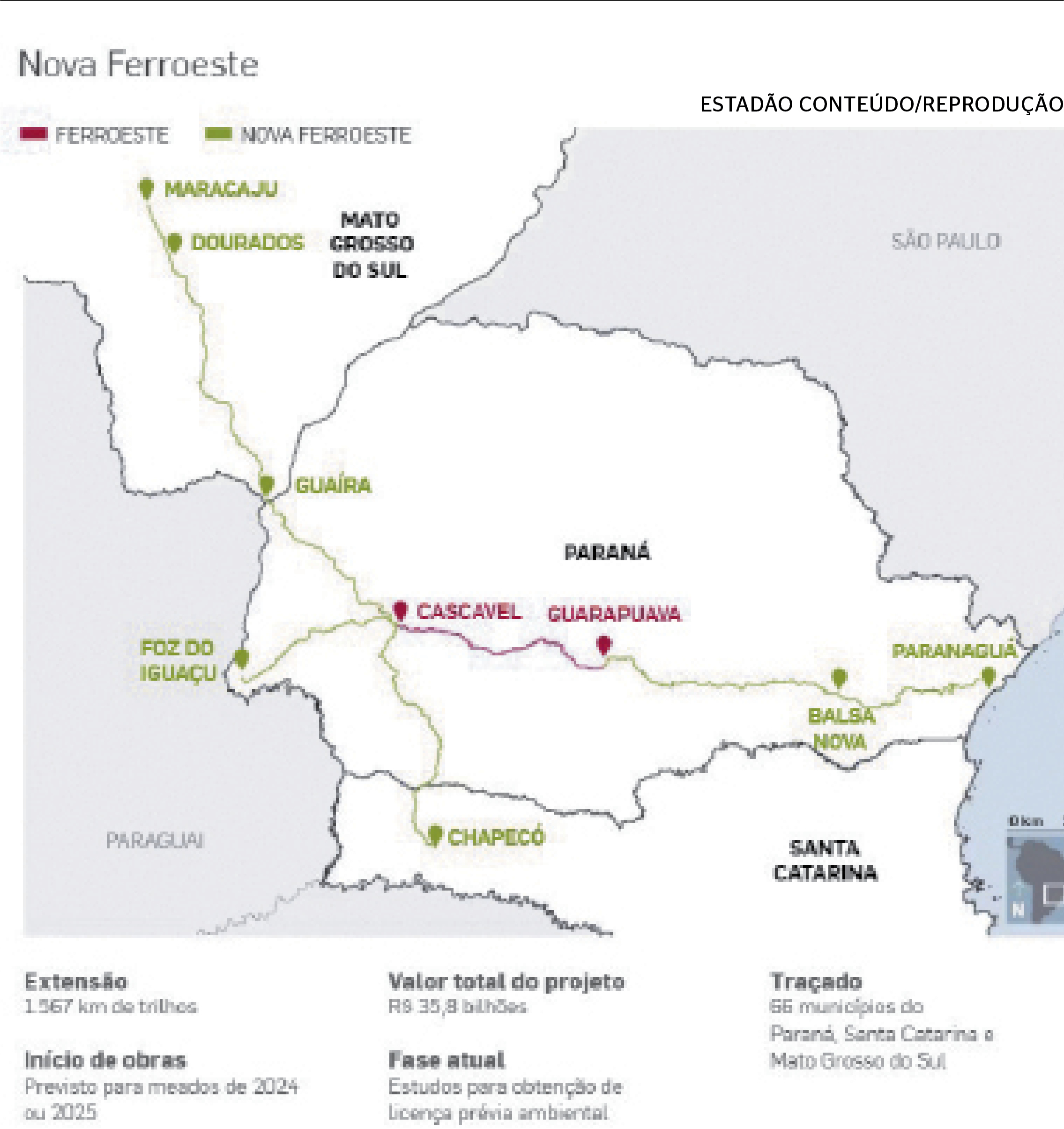 Reportagem da Gazeta do Paraná, de abril deste ano, apontou que o projeto “demora a sair do papel” por causa da indefinição sobre a Malha Sul, atualmente sob concessão da Rumo Logística.