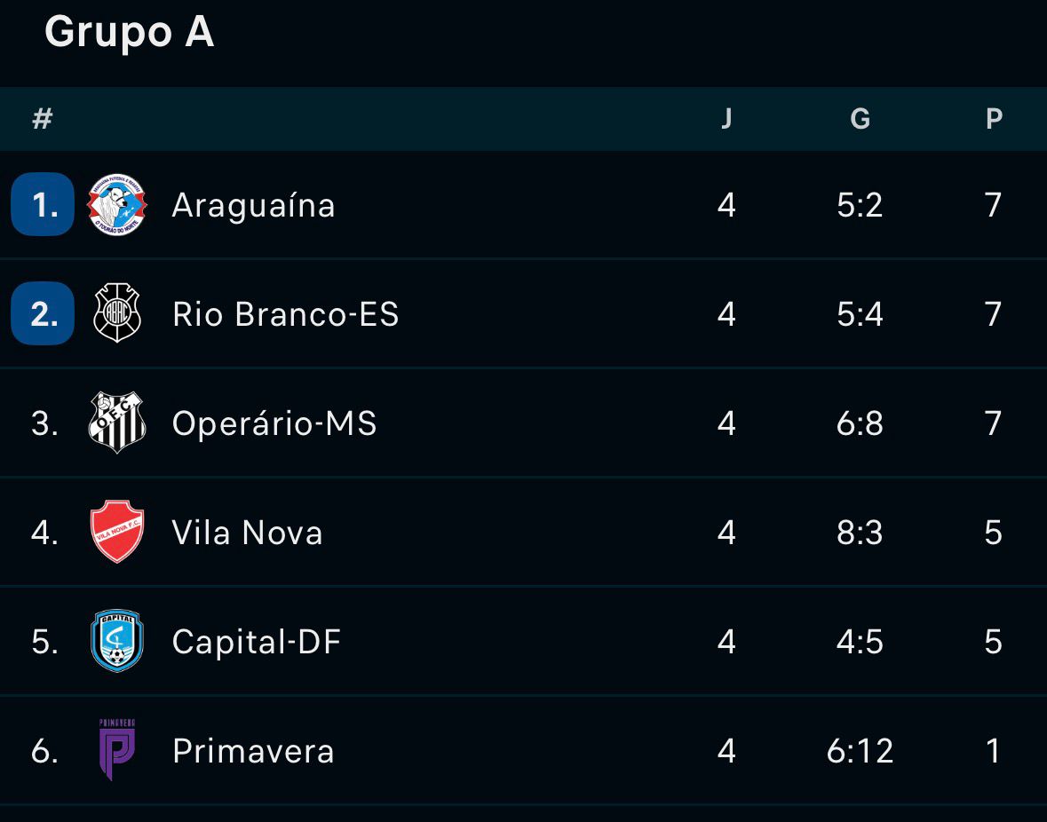 Com a goleada sobre o Primavera, o Galo subiu para terceira posição do Grupo A e está com 7 pontos, empatado com o líder Araguaína-TO e o segundo colocado Rio Branco-ES, mas fica atrás por causa do saldo de gols.