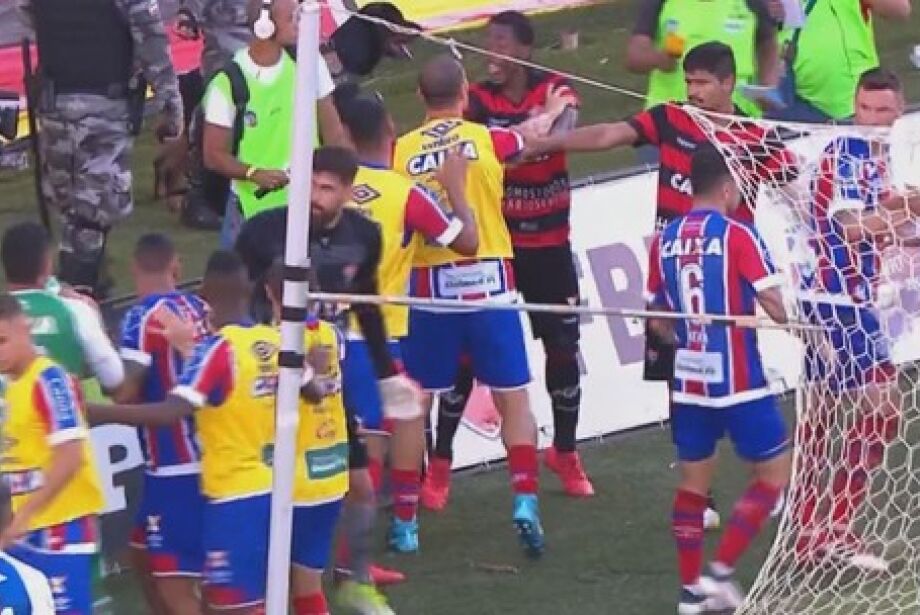 A comemoração do gol de empate deu início a uma verdadeira confusão generalizada no Barradão. Após converter o pênalti e dançar, Vinícius foi agredido por diversos jogadores, que começaram uma briga com diversos personagens. Ao todo, sete atletas foram expulsos, sendo quatro do Bahia (Edson, Rodrigo Becão, Vinícius e Lucas Fonseca) e três do vitória (Kanu, Denílson e Rhayner).