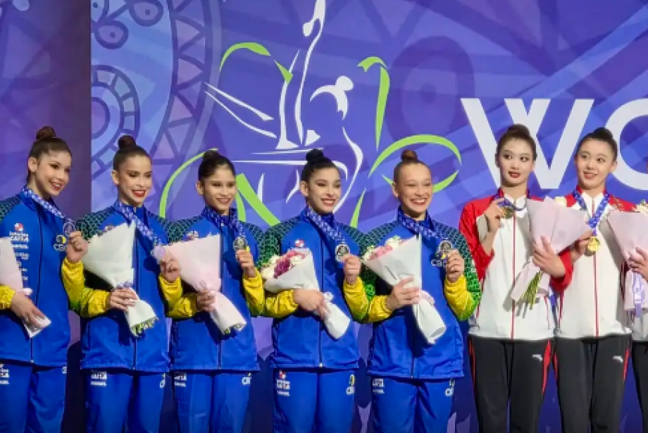 A participação brasileira na etapa de Tashkent (Uzbequistão) da Copa do Mundo de Ginástica Rítmica chegou ao fim com duas medalhas. Neste domingo (12), a capixaba Geovanna Santos, a Jojô, conquistou o bronze na exibição com a fita. Já no conjunto, a série mista - em que as atletas se apresentam com três arcos e duas maças (aparelho semelhante a um pino de boliche) - valeu a prata.