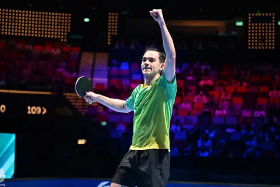 Número 3 do mundo, o mesatenista brasileiro Hugo Calderano cravou a quarta vitória seguida na Copa do Mundo de Macau e assegurou, antecipadamente, a medalha de bronze. Atual campeão do torneio, o carioca de 29 anos avançou às semifinais neste sábado (4), ao derrotar o francês Alexis Lebrun (14º no ranking mundial) por 4 sets a 0 (parciais de 11/8, 11/7, 11/9 e 11/8).