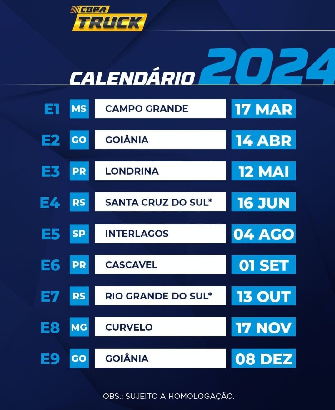 Confira abaixo o calendário oficial da Copa Truck para 2024: