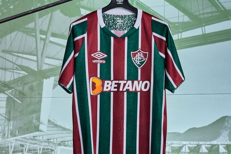 A nova versão da camisa do Fluminense conta com as tradicionais listras verticais nas cores verde, branco e grená e mantém o mesmo padrão nas mangas.