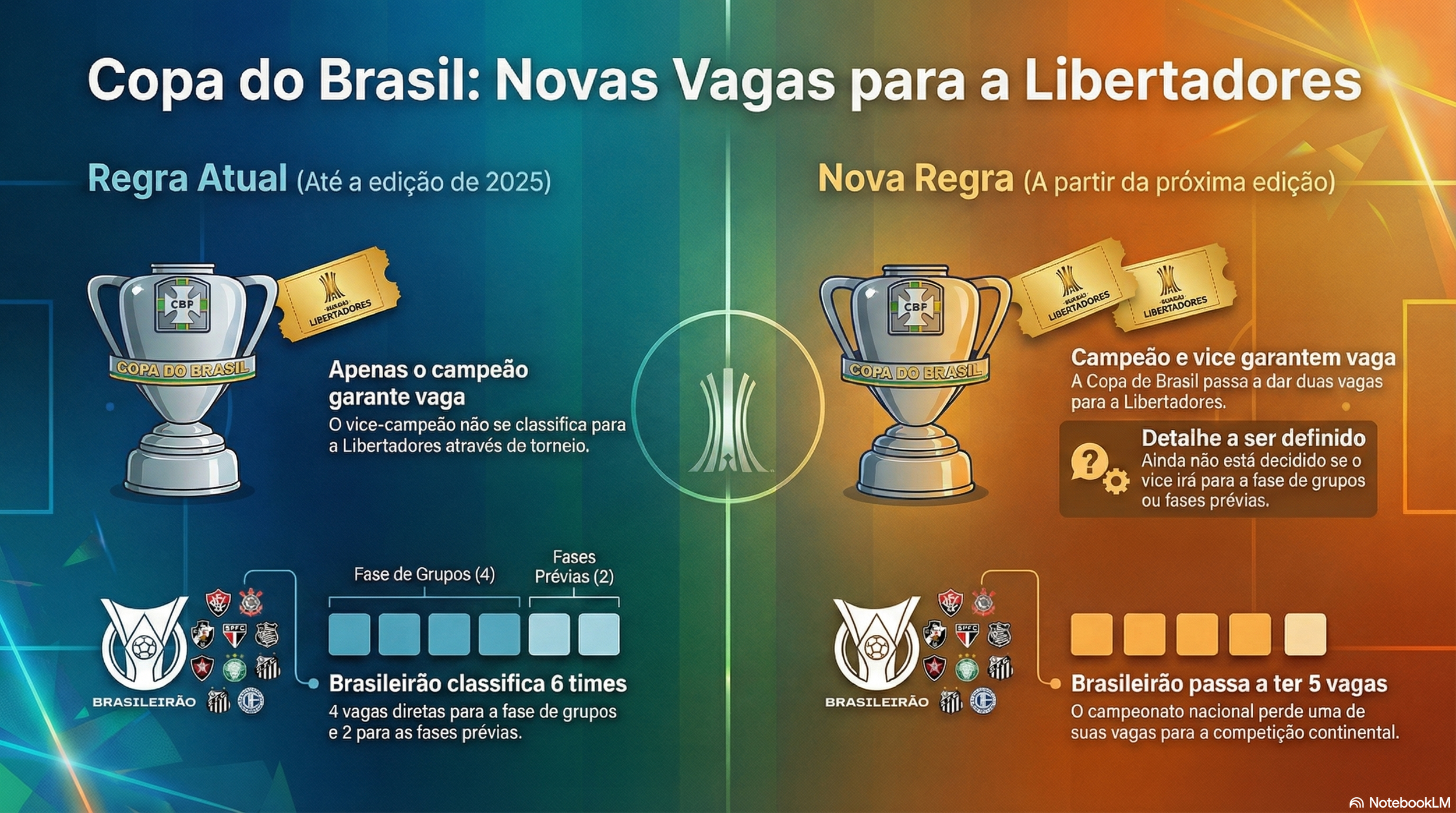 Esta alteração entrará em vigor já na edição de 2026 da Copa do Brasil, cujas vagas para a Libertadores serão distribuídas para a temporada de 2027 da competição sul-americana.