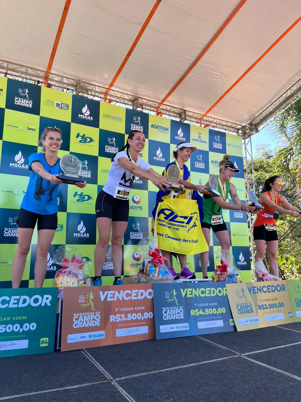 Na categoria feminina, a vencedora da maratona é Silvania Lopes Gimenes, 44 anos, de Ivinhema, município localizado a 296 quilômetros de Campo Grande. Ela correu 42 quilômetros em 3 horas, 34 minutos e 27 segundos e vai levar R$ 4,5 mil em premiação.