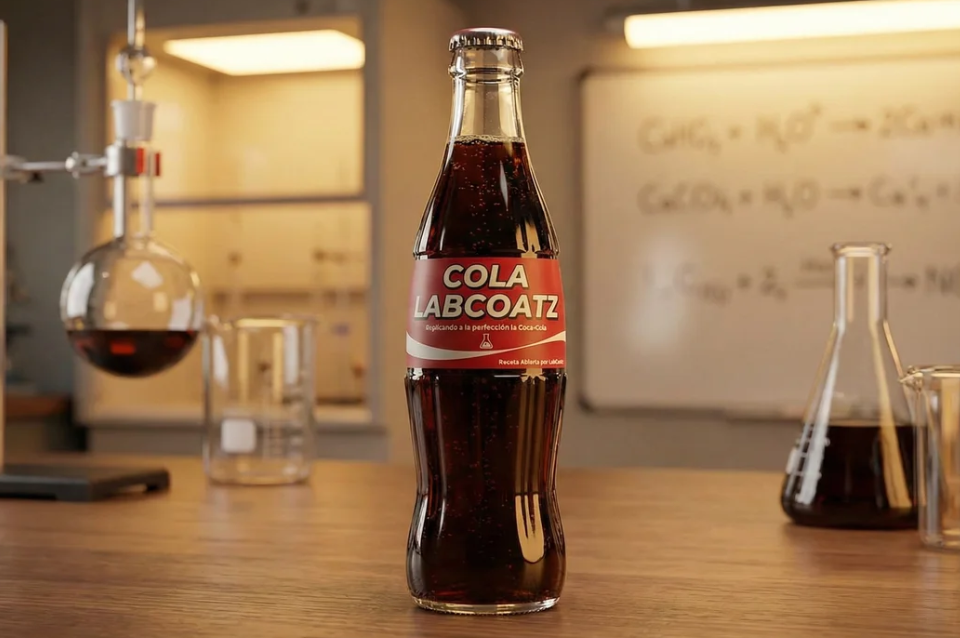 LabCoatz no solo buscaba las proporciones de azúcar, cafeína y ácido fosfórico, sino el corazón del misterio: los aceites esenciales y las especias que componen el famoso «Mercancía 7X».
