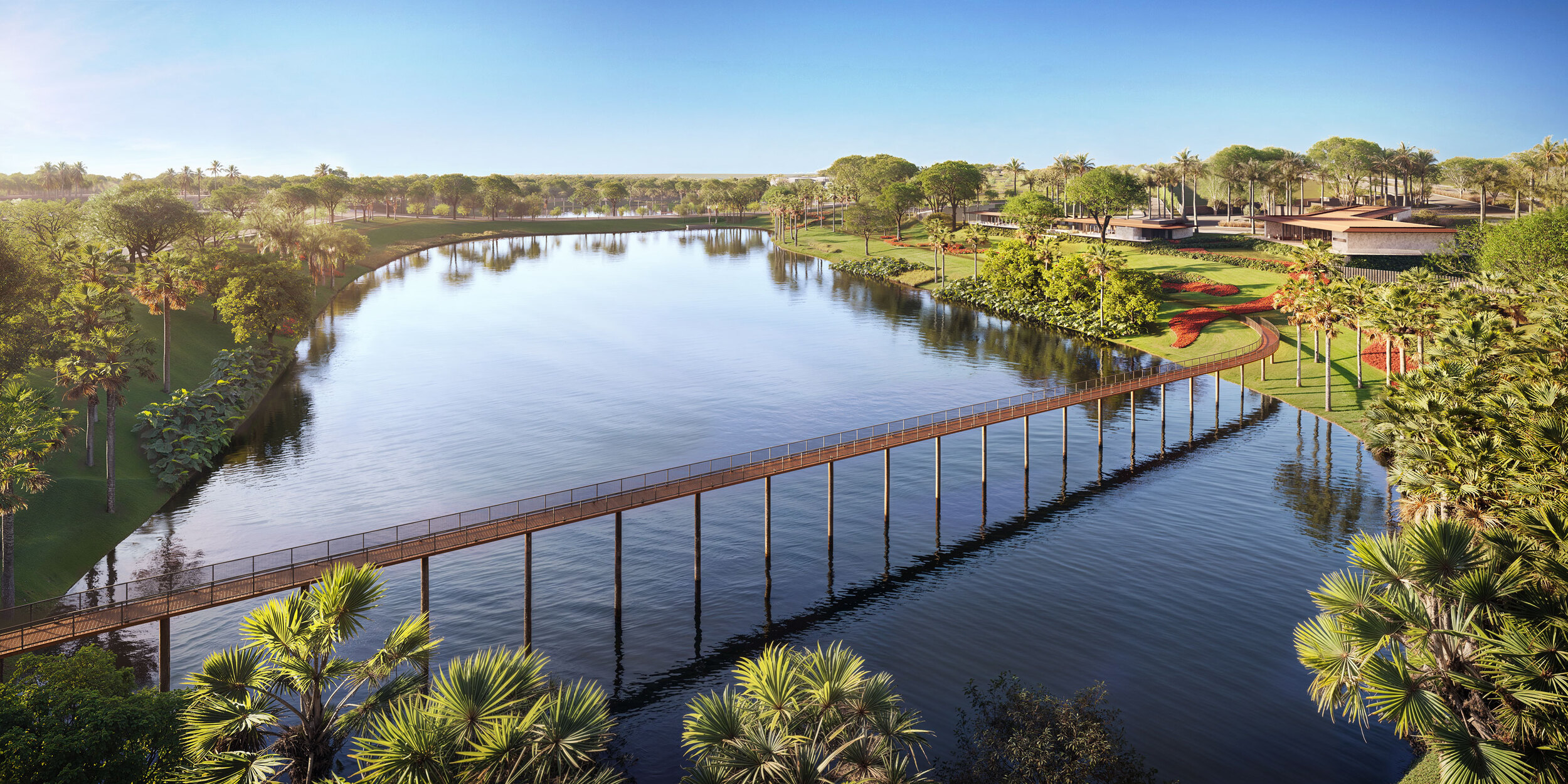 Com forte apelo de lazer e convivência, o empreendimento contará com piscina praia de 2.000 m², lago contemplativo, brinquedoteca lúdica, capela exclusiva, complexo esportivo com quadras cobertas e descobertas, academia completa com aparelhos da marca Technogym, spa e uma passarela panorâmica elevada sobre a água.