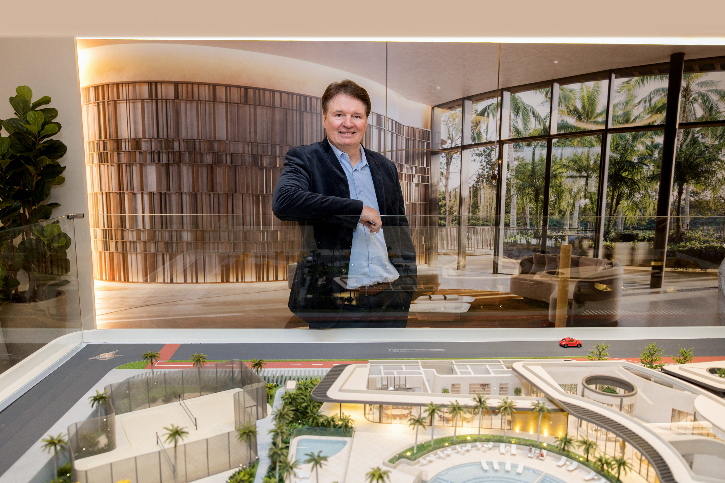 Essa aposta no futuro, contudo, não nasceu de planilhas recentes. Ela foi semeada em 2012, em um exercício de visão e coragem. Holzmann conta que vislumbrou o potencial daquela área ao observar a vocação natural de expansão do alto padrão na cidade, um corredor que seguia da Chácara Cachoeira, passava pelo Parque dos Poderes e seguia em direção à região da Chácara dos Poderes. O que havia era um conjunto de pontos promissores em um mapa. Faltava a conexão.