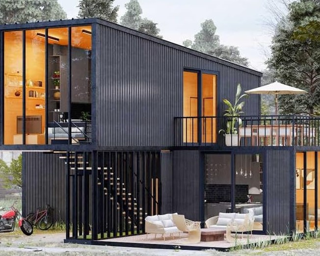 A residência comercializada na Amazon é fabricada no sistema modular e possui dois pavimentos bem definidos. Dependendo da configuração escolhida, o imóvel pode ter até quatro quartos.