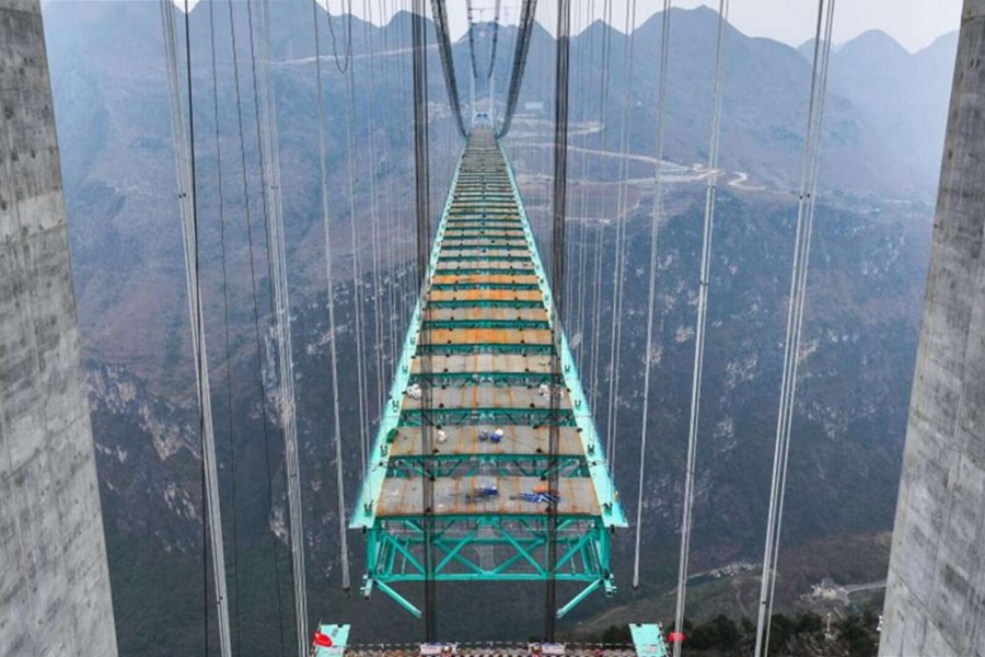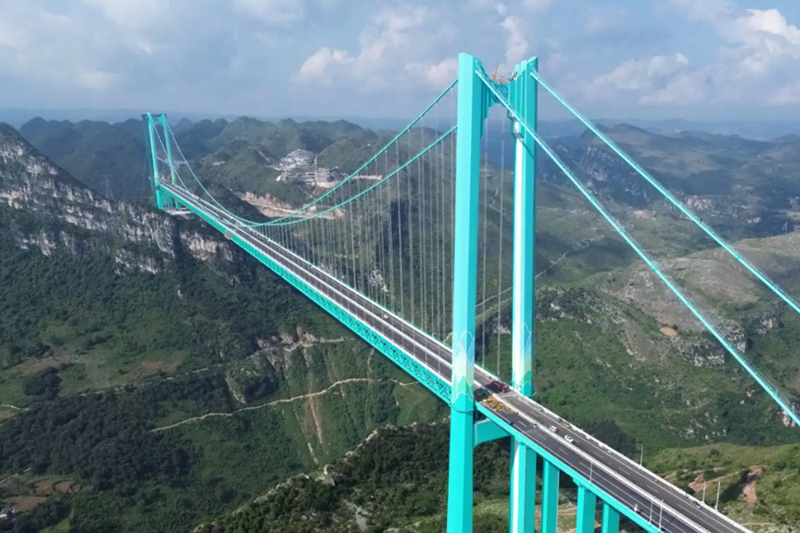 Com um vão principal de 1.420 metros, a ponte faz parte de uma nova via expressa que conecta o Distrito Especial de Liuzhi, na cidade de Liupanshui, ao Condado de Anlong. O trajeto, que antes exigia cerca de duas horas de viagem, agora pode ser percorrido em apenas dois minutos, marcando uma transformação significativa na mobilidade da região.