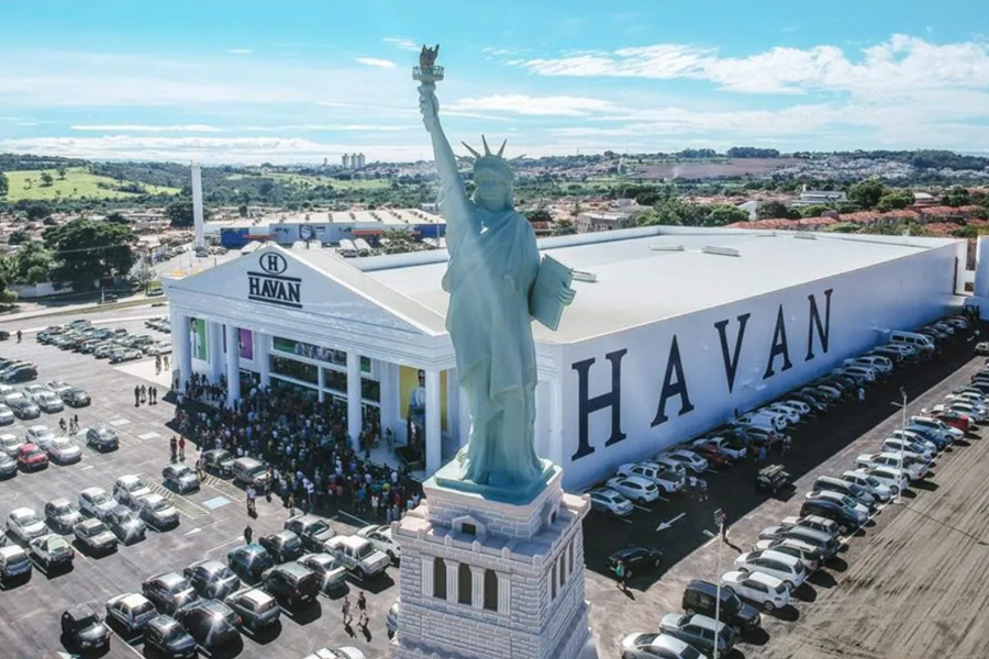 A Havan é uma das maiores redes de lojas de departamento do Brasil e chama a atenção não apenas pelo tamanho de suas unidades, mas também pela arquitetura imponente, inspirada na Casa Branca, dos Estados Unidos.