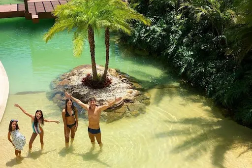 Embora levante questionamentos sobre a quantidade de elementos presentes, a mansão deu um salto em termos de valorização devido à praia artificial de aproximadamente 500 mil litros. Construído com fundo de areia, o “mar” torna-se parte da casa, dividindo opiniões sobre a real utilidade. Controversa ou não, a obra deixa o imóvel com a aparência de um resort superluxuoso.