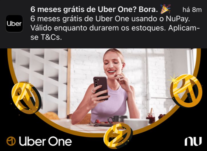 - Entrar no link da promoção ou aguardar seu aplicativo Uber, ou Nubank enviar a solicitação;