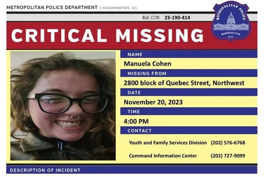 No dia 20 de novembro, Manuela Cohen, 17, saiu de sua casa em Washington com um caderno de desenhos, e ainda não voltou. Frustrados com o tratamento que a polícia americana vem dando ao caso, os pais da jovem contrataram um detetive particular, e agora esperam que a divulgação do caso na imprensa impulsione um avanço nas investigações.