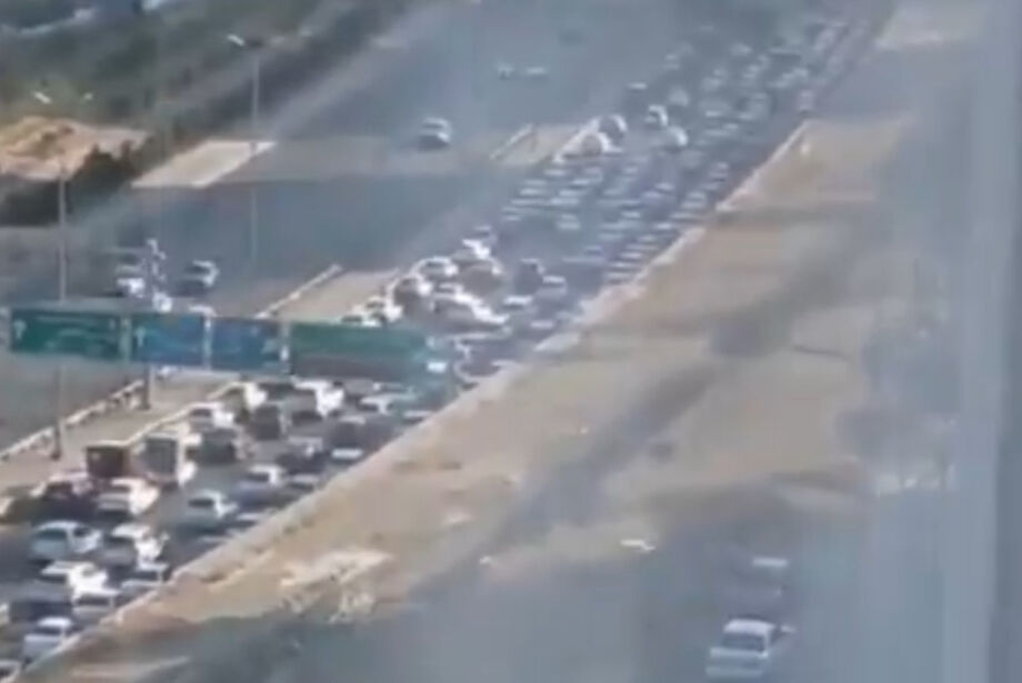 Um engarrafamento gigantesco se formou ontem na autoestrada Shomal, que liga Teerã ao balneário de Chalus, no Mar Cáspio, segundo imagens e vídeos postados nas redes sociais. Com o espaço aéreo iraniano fechado, a única forma de fugir da capital é por terra.