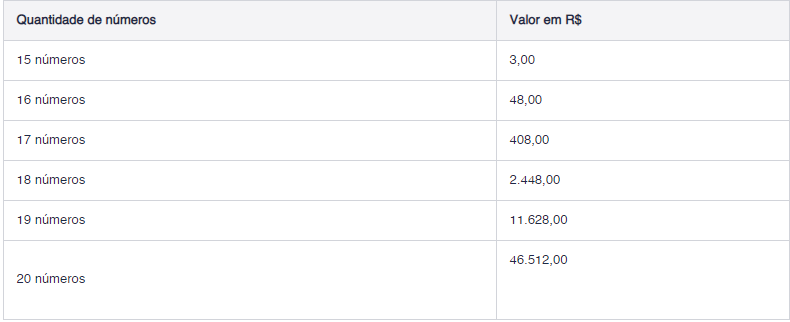 Com 13 acertos, tiveram 10.214 apostas ganhadoras, com prêmio de R$ 30 cada. Em 12 acertos, tiveram 124.829 apostas ganhadoras, com prêmio de R$ 12 cada. Em 11 acertos, tiveram 665.609 apostas ganhadoras, com prêmio de R$ 6 cada.
