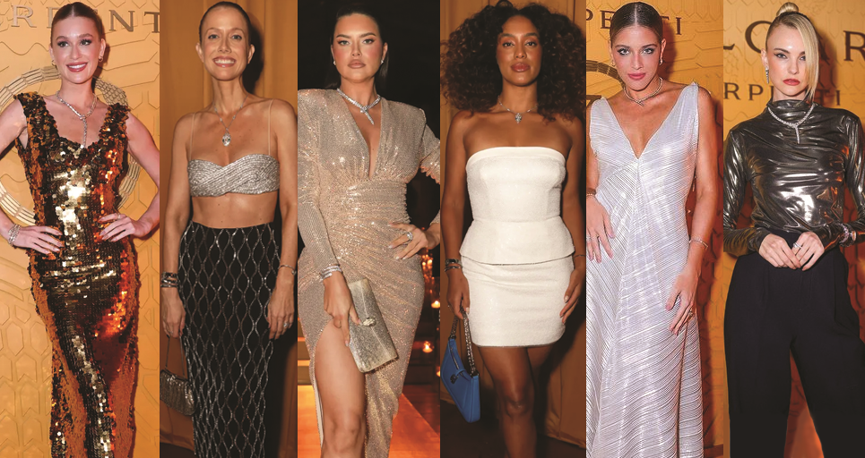 A grife italiana Bvlgari que já existe há 139 anos tem motivos de sobra para comemorar. É das mais consagrada e luxuosas marcas (relógio de pulso, joias, acessórios, perfume e cosméticos). Tem cerca de 300 lojas em 150 países e emprega cerca de 4000 pessoas (de forma direta). Nas terras brasileiras aproveitou a abertura de mais uma loja no shopping Cidade Jardim, em São Paulo e comemorou o 75º aniversário do relógio serpenti. Entre tantos que estavam por lá, da esquerda para à direita, Marina Ruy Barbosa, que se diz honrada por fazer parte do evento.“Tive a honra de representar o Brasil em eventos importantes da marca fora do país. Por isso, fico ainda mais feliz de poder fazer isso por aqui também”, a advogada criminalista, influenciadora digital, comentarista política e apresentadora Gabriela Prioli, a super modelo Adriana Lima, que veio ao Brasil especialmente para o evento; a ex-Miss Brasil 2016 e modelo Raissa Santana; a atriz Luma Costa; e a modelo Carol Trentini.