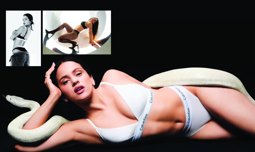 A cantora espanhola Rosalía continua em alta, mas não só nas paradas musicais como também no mundo publicitário. Em julho foi nomeada embaixadora global da New Balance e agora é o rosto da campanha de roupas íntimas da Calvin Klein onde apresentas as peças Icon Cotton Modal, Heritage Cotton e Perfectly Fit em cliques surpreendentes feitos por Carlijn Jacobs, onde posou até com uma cobra píton albina. Como em muitas campanhas de roupas íntimas da CK, Rosalía exibe um visual sexy sem esforço algum. "A lingerie Calvin Klein tem sido um elemento básico no meu guarda-roupa durante anos. Adoro a marca e é uma honra estar na campanha”. Apesar de amar moda, Rosalía diz que não tem um estilo definido. “Eu realmente amo moda. Talvez meus looks de trabalho sejam mais expansivos e poderosos, por assim dizer, mas no meu dia a dia, também é algo que eu seleciono e com o qual me divirto. Não acredito muito em fórmulas, mas tenho preferências, e agora estou me divertindo muito usando saias”. A nova campanha para a temporada de outono vem acompanhada de diversas fotografias e um vídeo, intitulado Rosalía Turns It Up (algo como "Rosalía dá tudo de si"), no qual, com poses sensuais e provocativas com as quais a artista aquece o ambiente, opta pelo minimalismo, tendo o preto e o branco como cores predominantes da proposta estética. Rosalía vem se firmando como um dos nomes mais influentes da moda atual. Ela já estrelou campanhas para Skims, MAC Cosmetics, Acne Studios e Dior. Mais: a cantora não para ela também deve aparecer na terceira temporada de Euphoria, da HBO e embora não tenha confirmado, tudo indica seu quarto álbum de estúdio será lançado em breve.