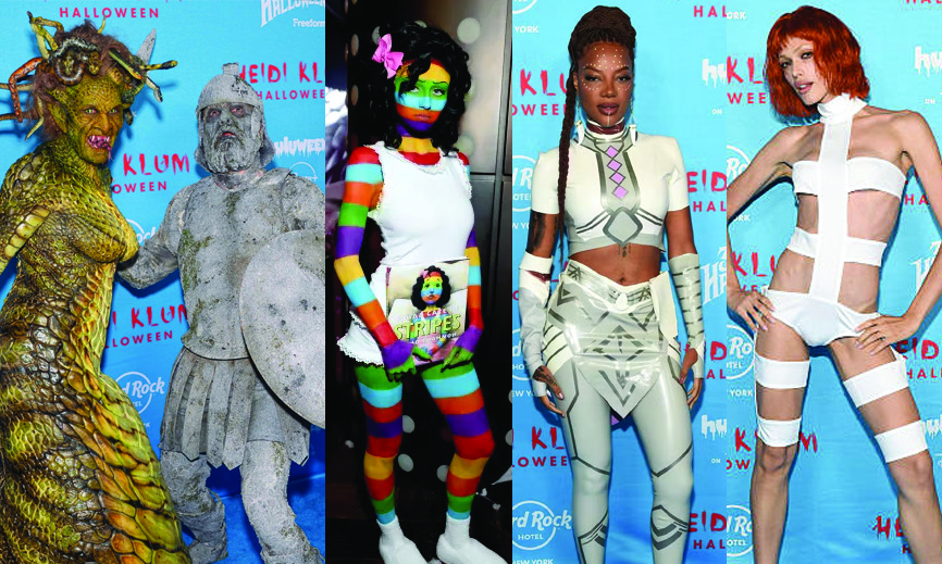 Uma das mais aguardadas festas de Halloween, não pela festa em si, mas pela fantasia usada pela anfitriã, da modelo e apresentadora Heidi Klum, aconteceu na sexta-feira (31). A modelo reuniu muitos convidados no Hard Rock Hotel, no centro de Manhattan, Nova York. A anfitriã mais uma vez ousou, misturando uma cobra com a cabeça de medusa, com as pequenas serpentes em sua cabeça com movimento. “Eu sempre tento encontrar coisas que as pessoas naturalmente não fariam. Muitas pessoas vão de enfermeira ou policial, mas eu sempre procuro algo que eu nunca tenha visto". E completou: “Quando me mudei para os Estados Unidos, me apaixonei imediatamente pelo Halloween e por toda a sua atmosfera assustadora. Só faltava uma festa fantástica”. Então Heidi decidiu fazer a sua própria festa e deu certo, este ano foi a 24ª edição. “Deu certo porque, ao longo dos anos, as pessoas têm se tornado cada vez mais extravagantes com suas fantasias. A festa se tornou quase lendária. É épica. Sinto que meu amor pelo Halloween fez com que outras pessoas também se apaixonassem pelo feriado." O marido de Klum, Tom Kaulitz, também não esquiva de se fantasiar. E sua fantasia é quase sempre algo ligada à da amada. Este ano músico do Tokio Hotel era um homem de pedra, sugerindo que ele havia se transformado numa estátua ao olhar para a medusa. Quem também encantou foi a filha Leni Klum, que se vestiu de Camilla Cream, personagem do livro infantil "A Bad Case of the Stripes", (1988) escrito e ilustrado por David Shannon. E teve brasileiras também na festa. A cantora Ludmilla teve sua fantasia inspirada no personagem Shuri, de "Pantera Negra", da Marvel, enquanto a modelo trans Valentina Sampaio se vestiu de Leeloo personagem de "O Quinto Elemento".