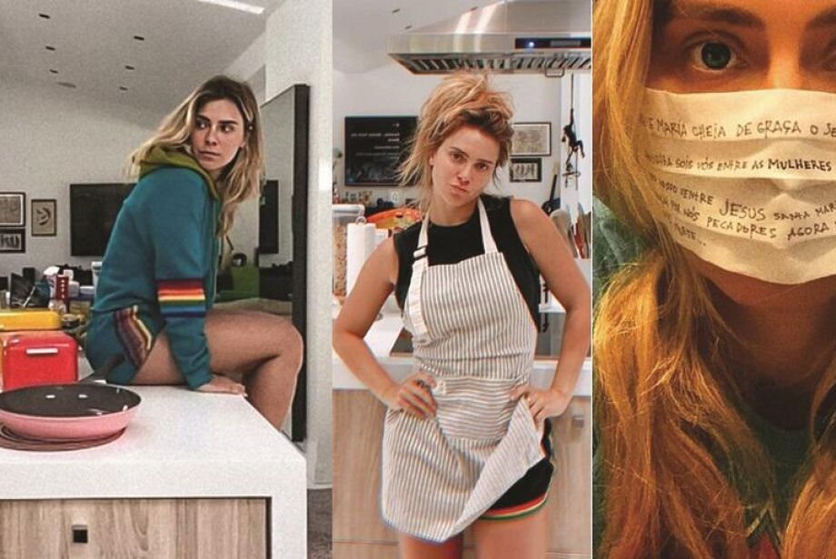 A atriz Carolina Dieckmann, 41 anos, está completando 1 ano longe do Brasil, depois de sua Afrodite em O Sétimo Guardião, voltou para Miami, onde mora com seus filhos e marido. Mas, agora pode ser revista como Teodora na reprise de Fina Estampa. Ela revelou que, na época, se preocupou em ficar musculosa. Porque o personagem vivia num ambiente do esporte de luta. Dieckmann participou do #projetopausa do fotografo Sérgio Zalis e conta que tem se esforçado na cozinha e na limpeza que não é seu forte. E garante que mesmo de longe tenta cuidar da família que está no Brasil. Ela mesmo está produzindo máscaras de proteção para sua família e distribui algumas para amigos. Em uma delas personalizou sua máscara com a oração Ave Maria.
