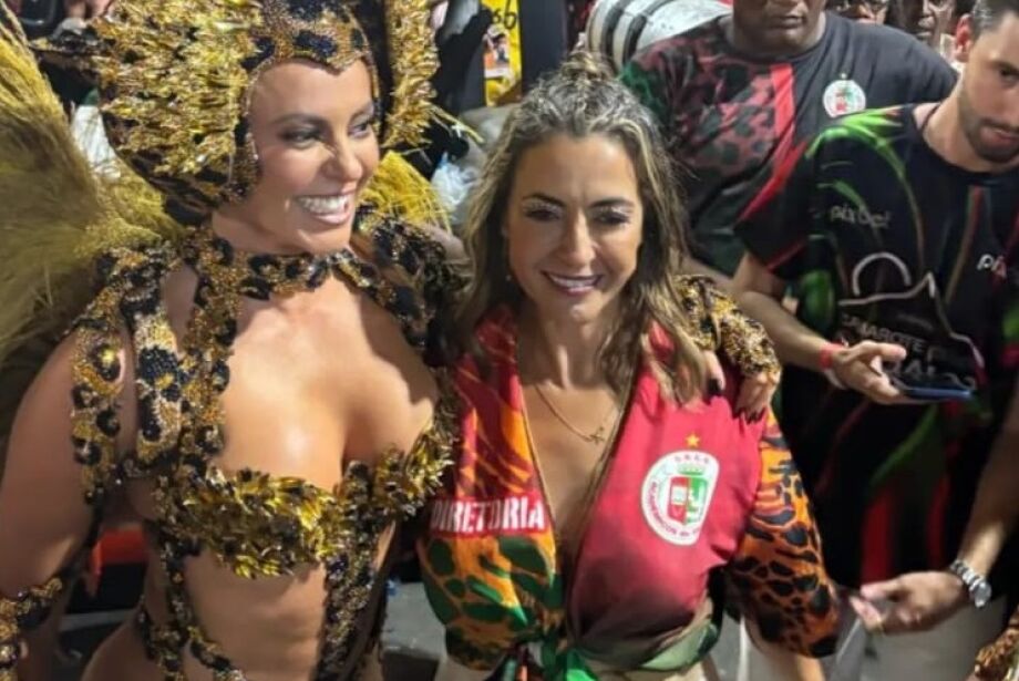 Na Grande Rio, que levou o tema onça para a avenida, a senadora desfilou pela diretoria e, nas redes sociais, postou foto ao lado da rainha da bateria, Paolla Oliveira.