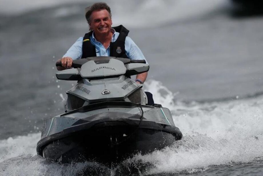 No começo da tarde, o presidente pilotou por poucos minutos um jet-ski da Marinha em ato chamado de lanchaciata por seus apoiadores.