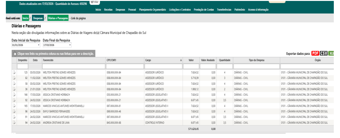 O Ministério Público de Mato Grosso do Sul (MPMS) constatou que, somente no primeiro trimestre de 2026, servidores da Câmara Municipal de Chapadão do Sul geraram um gasto de R$ 528.303,65 com despesas de viagens a trabalho.