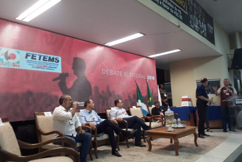 A ausência do governador, Reinaldo Azambuja (PSDB), pautou considerações entre todos os candidatos ao governo do Estado que participaram do debate realizado pela Federação Federação dos Trabalhadores em Educação de Mato Grosso do Sul (Fetems).