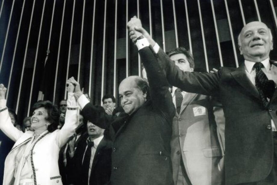Ele venceu o candidato Paulo Maluf, do PDS, na última eleição indireta do Brasil
