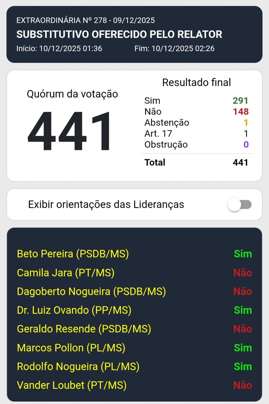 A bancada do estado se dividiu. Metade a favor e metade contra. Foram favoráveis ao texto Beto Pereira (PSDB), Dr. Luiz Ovando (PP), Marcos Pollon e Rodolfo Nogueira (os dois do PL). Os parlamentares contrários foram Camila Jara e Vander Loubet (ambos do PT) e Dagoberto Nogueira e Geraldo Resende (os dois do PSDB).