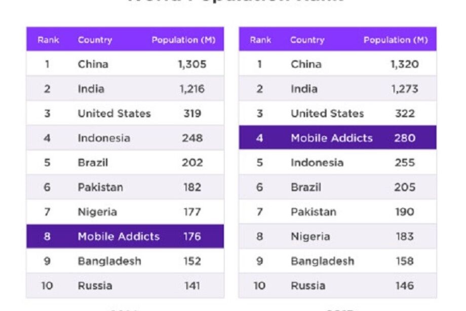 De acordo com a consultoria Flurry, responsável pelo estudo, é considerado como viciada em celular a pessoa que abre aplicativos mais de 60 vezes ao longo de um dia. Na comparação com o ano passado, o número de viciados cresceu 59%. São 280 milhões de pessoas nessa situação. Se morassem em um mesmo país, essa população ocuparia a posição número 4 no mundo, com mais gente do que no Brasil inteiro.