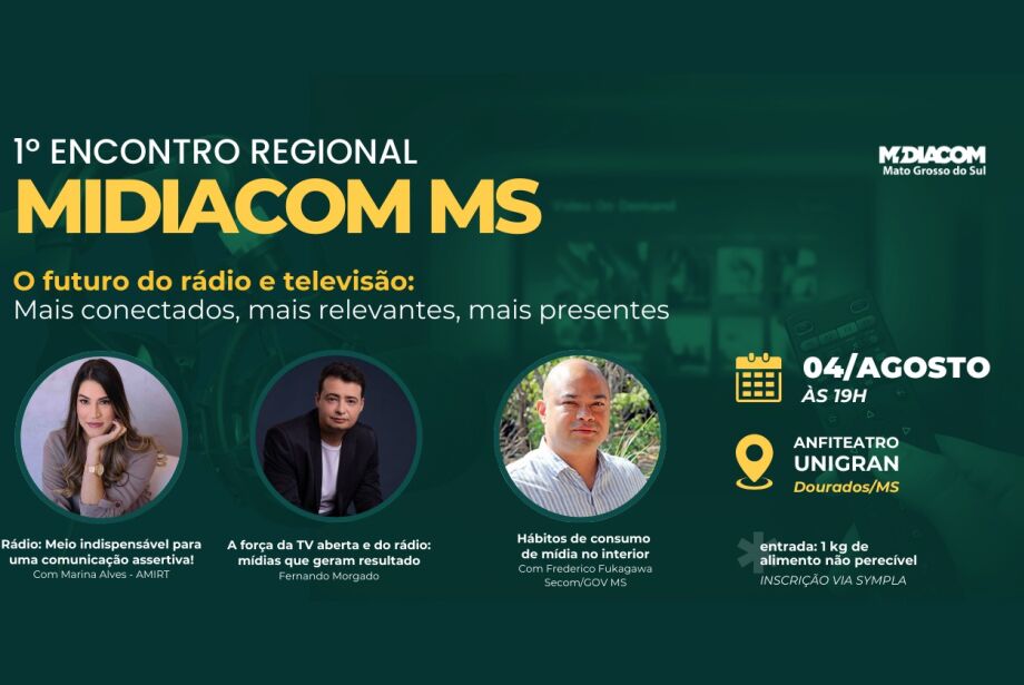 Com o tema “O Futuro do Rádio e da Televisão: mais conectados, mais relevantes e mais presentes”, o evento é uma iniciativa inédita da MIDIACOM MS para aproximar profissionais, empresários, estudantes e especialistas, proporcionando um ambiente rico para a troca de experiências e o debate de ideias.