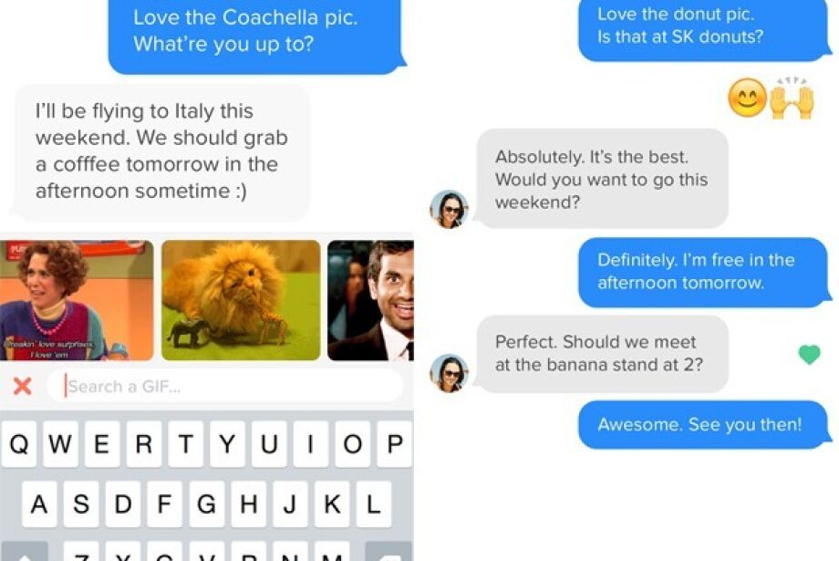 Já o CEO do GIPHY, Adam Leibsohn, citou exemplos de GIFs que podem ser enviados o usuário pode enviar a um "match": "Seja com um personagem de um programa de TV, momentos de videoclipes da banda favorita ou um GIF irresistível de um gatinho, nos conectamos por meio dos conteúdos que amamos".