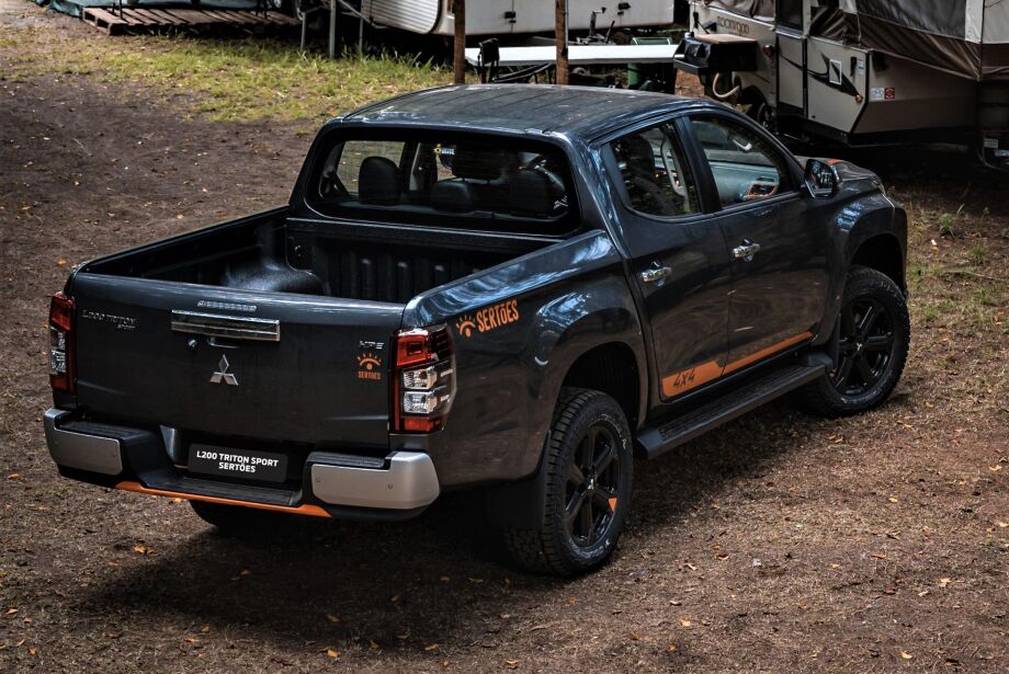 Disponível para as três versões da Triton Sport 2021 – GLS, HPE e HPE-S – a série especial oferece vários detalhes exclusivos. Por fora, a picape leva a mesma cor laranja oficial do emblema do Sertões em conjunto com o tom preto brilhante. Na frente, o laranja está presente em faixas que saem da parte superior da grade e percorrem todo o capô do veículo. O “skid plate” na parte inferior da dianteira recebe a cor da série especial que, em contraste com o preto brilhante de parte da grade, dão um visual esportivo e robusto à picape média. As rodas de aro 18 são pintadas em preto com um pequeno detalhe em laranja. Elas recebem pneu 265/60, mais voltado para o piso fora-de-estrada em relação à versão original. A série traz um adesivo em cor laranja com o emblema 4x4, revestindo todo o espaço entre-eixos na parte inferior da lateral. As maçanetas das portas têm acabamento em preto, ajudando a destacar o adesivo laranja com a logomarca “Sertões” no final da caçamba, próximo às lanternas. A traseira é marcada pelo logo do rali colocado bem abaixo do badge com a versão da picape, colado na tampa da caçamba, cuja maçaneta teve o acabamento cromado substituído por um preto brilhante, combinando com o revestimento X-Liner que protege e otimiza a capacidade de carga da picape.