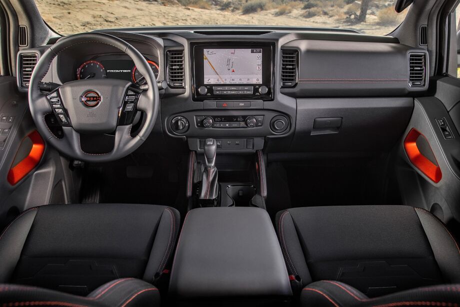 No novo interior da Frontier, chamam a atenção vários detalhes estilosos em laranja. A multimídia tem tela sensível ao toque de 8 ou 9 polegadas, com espelhamento com Apple CarPlay ou Android Auto. O novo console central é simplificado e intuitivo, permitindo uma experiência amigável para o motorista e o passageiro da frente. Para tornar a vida do condutor mais tranquila, o Advanced Driver Assist Display de 7 polegadas transmite informações configuráveis diretamente na frente de seus olhos.