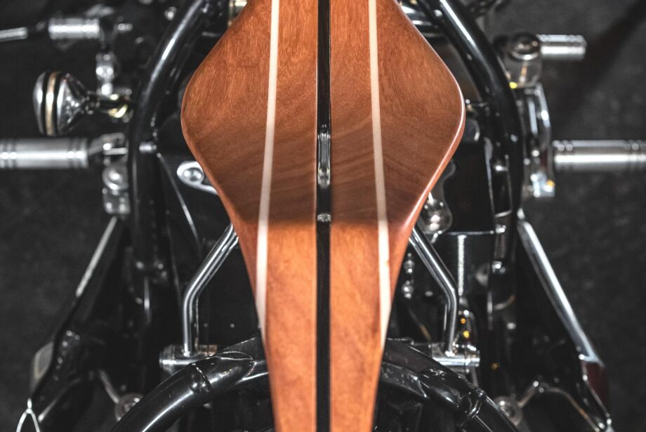 A cauda e o assento são suspensos e dão a ideia de flutuar. A extremidade traseira é de mogno com uma seção central de aço inoxidável polido, dando à motocicleta uma aparência de joia. Os garfos têm a mesma inclinação dos originais, porém, tem um visual que lembra os das motos antigas. Entretanto, por dentro, são completamente modernos, construídos a partir de peças sólidas usadas como matéria-prima para a laminação.