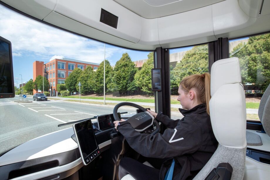 Graças à ausência de um volumoso propulsor de combustão interna, o motorista do Volta Zero senta-se em uma posição de direção central, com uma altura do assento muito mais baixa do que a de um caminhão convencional.