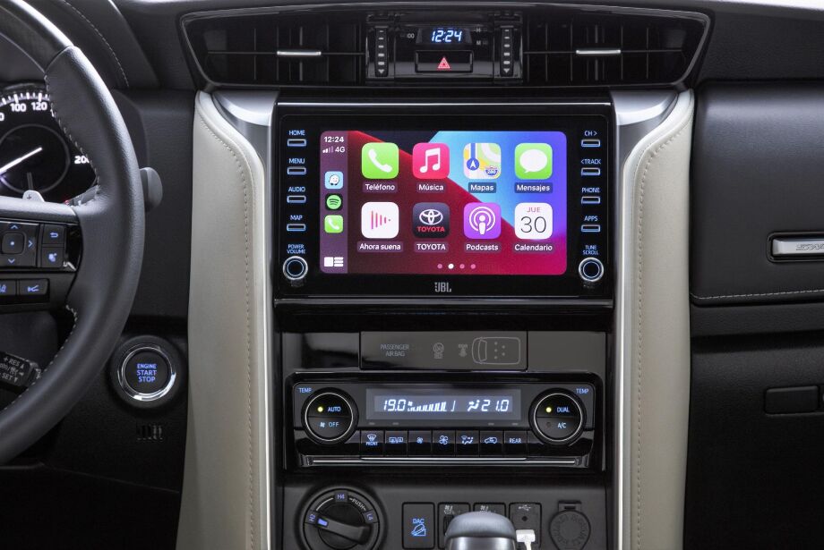 O SUV tem sistema de conectividade com tela sensível ao toque de 8 polegadas, com espelhamento para Android Auto e Apple CarPlay, navegador por satélite (GPS), TV digital e Bluetooth, acompanhado pelo sistema de áudio premium JBL com dez alto-falantes e subwoofers.