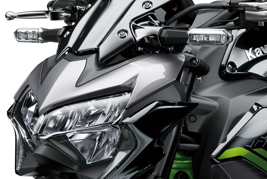 A Z900 chega à linha 2021 mais tecnológica. Além de aprimoramentos no chassi e nas suspensões, a supernaked da Kawasaki incorpora painel TFT e Bluetooth. Isso permite conectar a moto ao smartphone e ter acesso a diferenciais como o KTRC (Kawasaki Traction Control) e o Power Mode (Controle de Entrega de Potência), que podem ser combinados por meio do Riding Mode, dispondo de quatro opções de escolha: Sport, Road, Rain e Rider (configuração manual). No aspecto visual, as carenagens mais minimalistas reforçam o visual agressivo e o porte da Z900, bem como as novas aletas de proteção, na tampa do tanque de combustível e na traseira. Todo o sistema de iluminação - farol, luz de placa, setas, lanterna traseira e luz de posição - agora utiliza leds. A lanterna manteve o já tradicional formato “Z”, característica da família naked Kawasaki. Segundo a fabricante, o novo desenho do farol contribui para o aspecto de predador em posição de ataque.